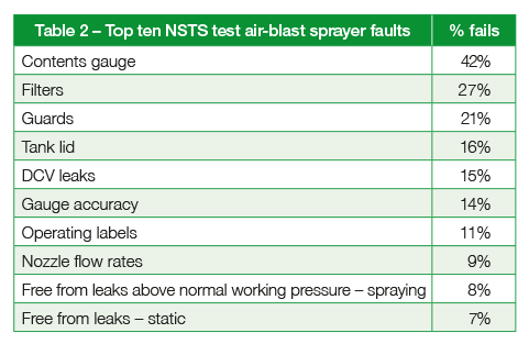 NSTS engineers find similar faults on orchard sprayers, with the top ten featuring even more simple to fix problems but, most worryingly, lack of proper guarding on 21% of the machines.